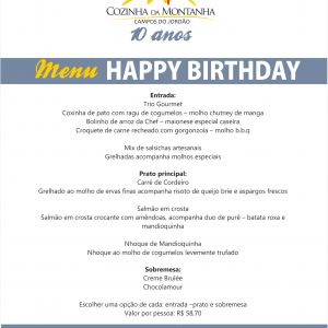 Acontece o 54º Happy Business e convite para o jantar Happy Birthday, comemorando os 10 anos Cozinha da Montanha.