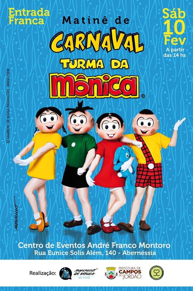 Prepare a sua marchinha de carnaval e concorra a prêmios em dinheiro! O FEMUCAR de Campos do Jordão, distribuirá R$ 4.700,00 em dinheiro aos vencedores dos concursos de Marchinha, Rei Momo e Princesas do Carnaval. Mas ATENÇÃO, as inscrições para participar do Festival de Marchinhas devem ser feitas somente pela Internet, no endereço www.culturacj.blogspot.com.br até a meia noite de quarta-feira feira, dia 07 de fevereiro. Um dos eventos mais tradicionais de Campos do Jordão, o FEMUCAR - Festival de Marchinhas Carnavalescas, acontecerá no Espaço Cultural Dr. Além, às 19h, no dia 9 de fevereiro, sexta-feira. Brinque o carnaval com a Turma da Mônica em Campos do Jordão. No dia 10 de fevereiro, sábado, das 14h às 18h acontece o Carnaval da Turma da Mônica, no Centro de Eventos André Franco Montoro, na Abernéssia, ao lado do Ginásio Esportivo. O matinê infantil é realizado pelo sexto ano, pelo Fundo Social de Solidariedade. É um momento de integração e lazer das famílias que levam seus filhos para interagir com os personagens da turma da Mônica. A entrada é gratuita!