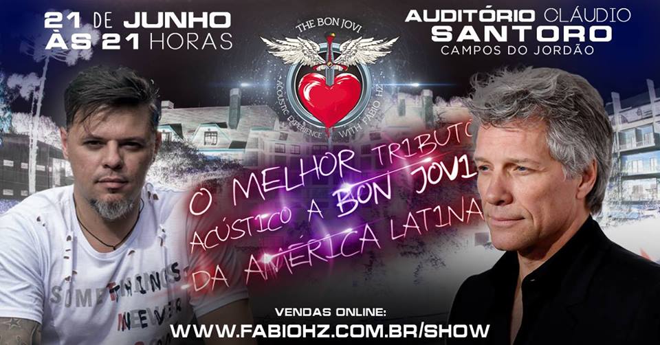 Chega a Campos do Jordão o Melhor Espetáculo Tributo Acústico a BON JOVI da América Latina!Formada em 1982 em New Jersey, a banda BON JOVI, que já vendeu mais de 130 milhões de cópias dos seus 19 álbuns e é recordista de público em suas turnês mundiais, ganha sua homenagem acústica mais importante na América Latina, o espetáculo “The Bon Jovi Acoustic Experience”!Criado e interpretado pelo cantor, compositor, guitarrista e empresário Fábio HZ, o espetáculo conta com uma produção musical encorpada e uma apresentação que vai além do banquinho e violão, com arranjos sofisticados, loops e efeitos harmônicos, que garantem ao ouvinte uma experiência ampla e rica.Fábio Hz descobriu a música muito cedo, aos 14 anos em 1995, quando ganhou de presente o aclamado álbum These Days, da banda que se tornaria a grande inspiração da sua vida.