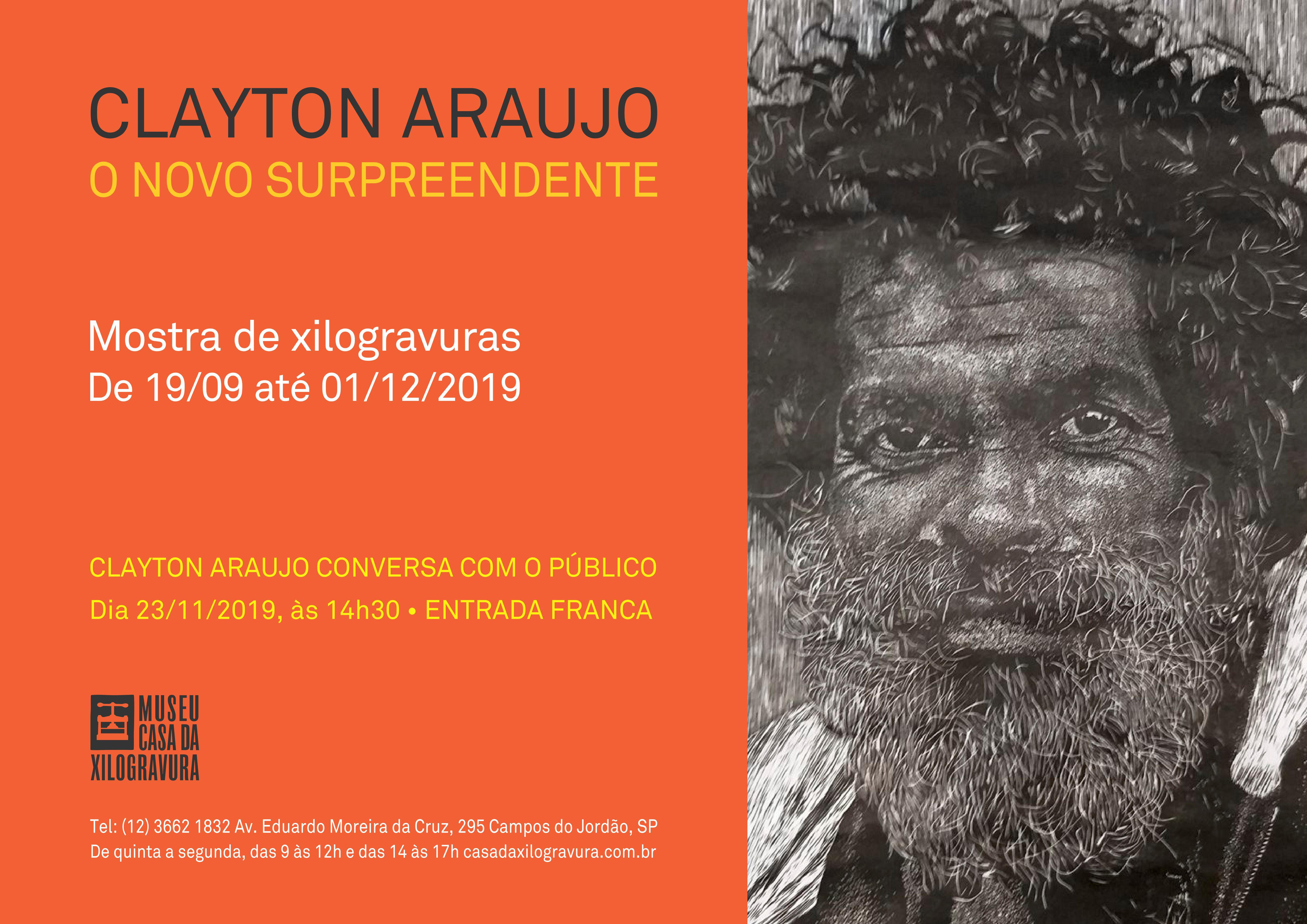 A Casa da Xilogravura tem vários desígnios, todos voltados para a gravura com matriz de madeira. Compete-lhe colecionar, exibir, conservar, divulgar e fomentar pesquisas sobre xilogravura.No que tange a “colecionar” e “exibir”, interessam a este Museu, além dos autores consagrados, também os novos e os novíssimos, que estão iniciando a carreira artística. Há um compromisso com a descoberta de autores pouco conhecidos hoje, muito valorizados amanhã. E é imperioso exibi-los, em especial quando apresentam grande talento e seus precoces méritos fazem supor o brilho futuro.Este é o caso de Clayton Araujo. Ele aparece agora, mas já vem pronto.É bem verdade que desde 2011, quando iniciou o curso de graduação em Artes Visuais na Universidade Cruzeiro do Sul, de São Paulo, já começou a dedicar-se à arte xilográfica. Entretanto, até hoje manteve-se quase incógnito.Mas trabalhou muito, muitíssimo, com afinco e perseverança. Buscou inspiração nos grandes mestres e contou com estímulo e orientação pessoal de Afonso Balestero. O resultado é fantástico e se vê nesta mostra de retratos marcantes, em rico claro-escuro, que parece entremostrar a alma dos retratados. Seus personagens emergem de uma pequena cidade mineira, são agricultores, membros de um grupo de congada, donas de casa, etc.Eis porque a Casa da Xilogravura fica muito satisfeita ao expor os trabalhos de Clayton Araujo. O público sentir-se-á tocado ao vê-los. São obras maduras, ainda que o artista seja muito moço – nasceu em 1981 - ricas em técnica, fortes na expressão e, acima de tudo, surpreendentes.