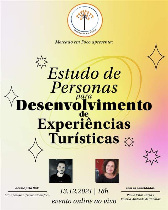 O grupo colaborativo Mercado em Foco Campos do Jordão convida para o evento online de apresentação dos resultados da pesquisa “Estudo de Personas para o Desenvolvimento de Experiências Turísticas” para a cidade de Campos do Jordão.