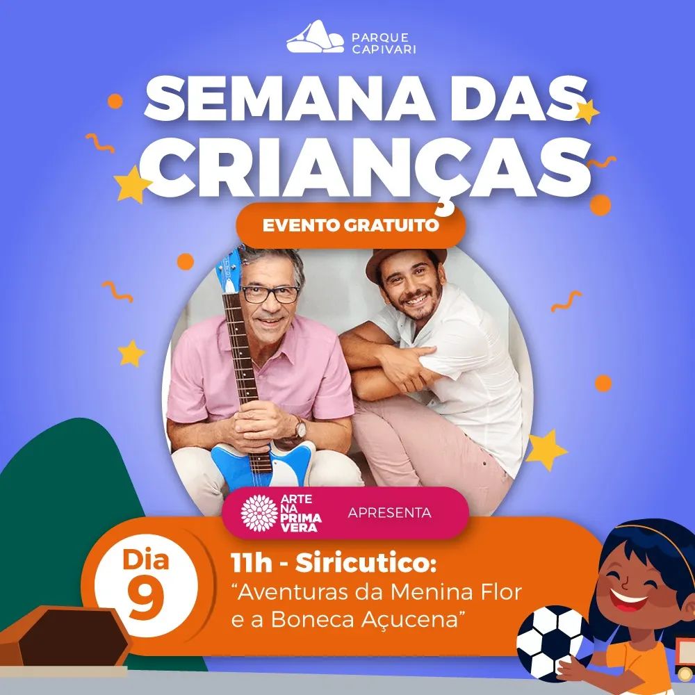 O festival, que acontecerá entre setembro e novembro, no Auditório Cláudio Santoro em Campos do Jordão (SP) terá ao todo 11 espetáculos de música, dança e teatro. Quem apenas quiser acompanhar a transmissão, deverá acessar o Youtube do Auditório Cláudio Santoro. Informações também podem ser obtidas através do e-mail imprensaculturasp@sp.gov.br, ou através dos telefones (11) 3339-8116, (11) 3339-8162, (11) 98849-5303 (plantão) da Assessoria de Imprensa – Secretaria de Cultura e Economia Criativa do Estado de São Paulo.Artes cênicas, música e palhaçaria é o que o público encontra com "Siricutico em: Aventuras da Menina Flor e a Boneca Açucena", de Paulo Tatit e Filipe Edmo. Classificação Indicativa: LivreEvento Gratuito