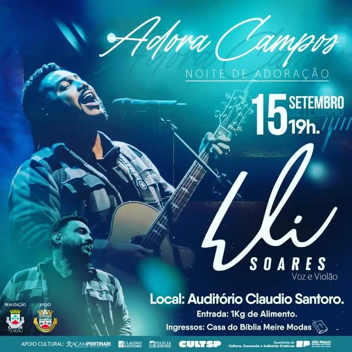 ADORA CAMPOS!!Dia 15 de Setembro Noite de Adoração com ELI SOARES!! Local: Auditório Cláudio Santoro Retirada de ingresso na Casa na Bíblia - (Avenida Brigadeiro Jordão) INGRESSOS LIMITADOS!!!