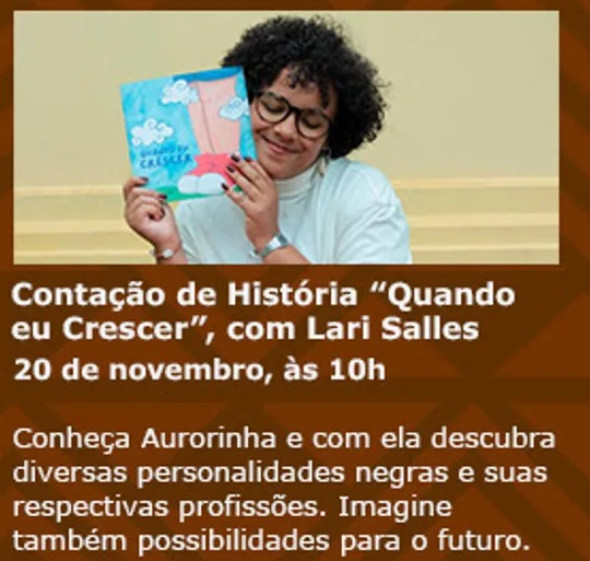 Consciência Negra: Contação de História “Quando eu Crescer”, com Lari Salles