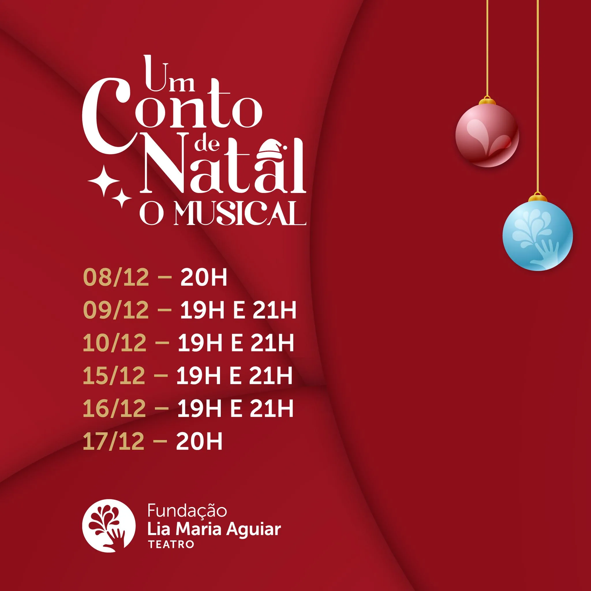 “Um Conto de Natal – O Musical” traz para o palco uma releitura da trama clássica do romancista inglês Charles Dickens. Tudo começa na véspera de Natal, quando o rico e avarento Ebenezer Scrooge é visitado por espíritos que o transportam pelo passado, presente e futuro, fazendo-o repensar sua vida. “Um Conto de Natal” foi o primeiro espetáculo musical encenado pela FLMA, em 2010. Este ano, ganhará outra roupagem, recriando o enredo com novas experiências e muito talento. As apresentações acontecem de 08 a 10 e 15 a 17 de dezembro. Espetáculo Núcleo de Teatro FLMA