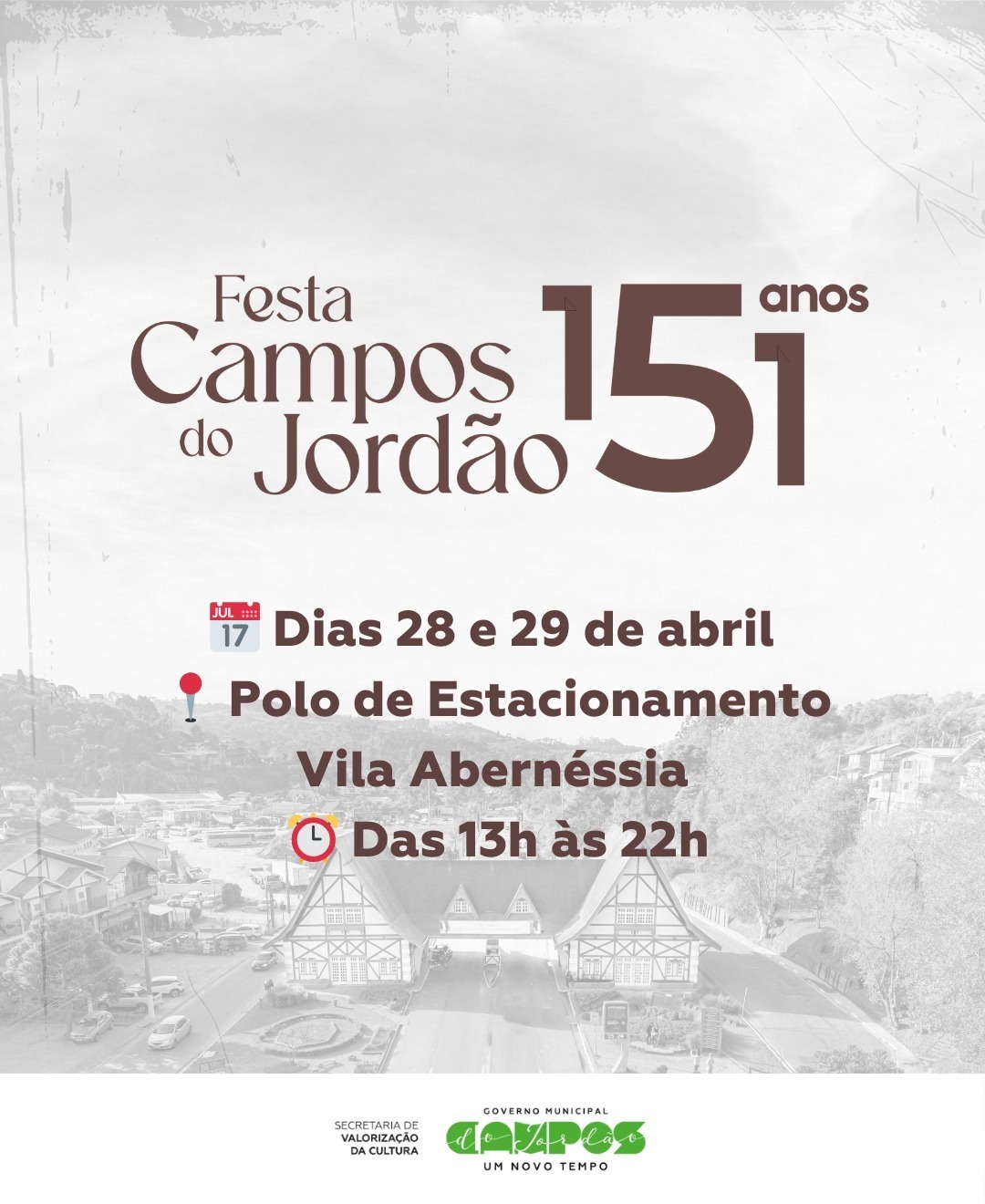 Vem celebrar com a gente nos dias 28 e 29 de abril, no Polo de Estacionamento da Vila Abernéssia, das 13h às 22h!