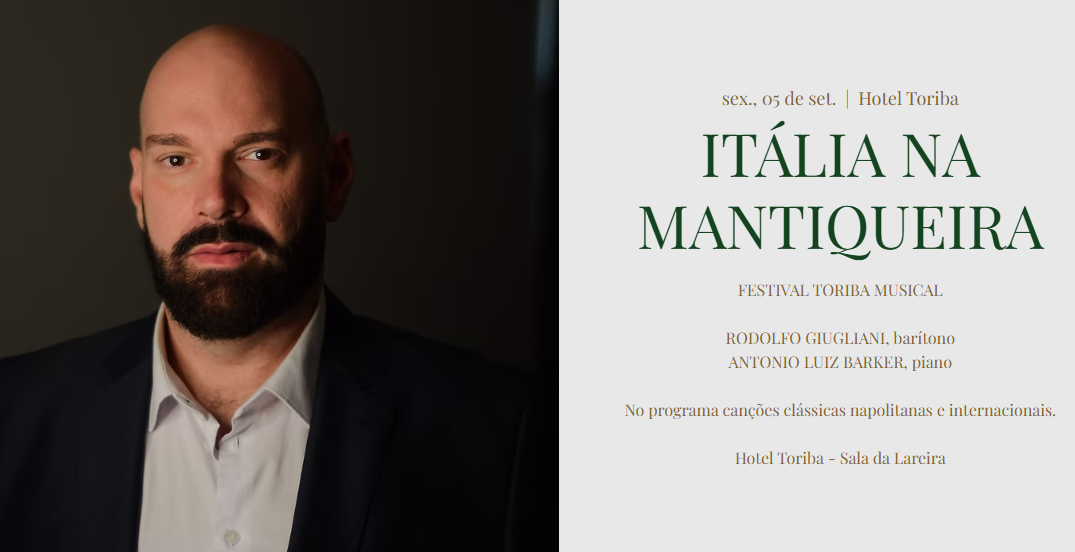 RODOLFO GIUGLIANI, barítono ANTONIO LUIZ BARKER, piano No programa canções clássicas napolitanas e internacionais.