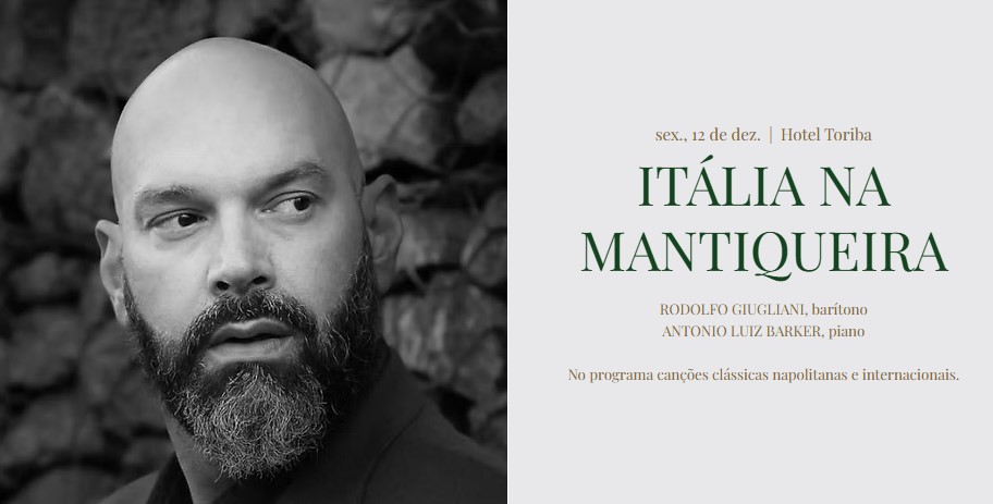 Sob a direção de Barker, o programa Toriba Musical começou a convidar músicos talentosos para se apresentarem aos finais de semana. Com uma programação cuidadosamente elaborada para enaltecer essa belÃssima arte, o programa oferece aos hóspedes uma diversidade de repertórios, incluindo piano clássico, jazz, recitais de canto, música lÃrica, árias de ópera, música brasileira, bossa nova, entre outros. RODOLFO GIUGLIANI, barÃtono ANTONIO LUIZ BARKER, piano ​No programa canções clássicas napolitanas e internacionais.