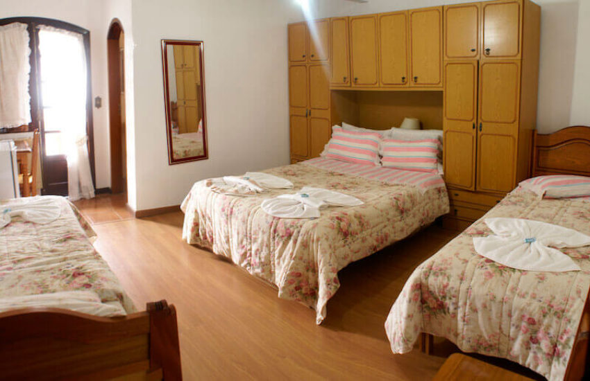 Dispõe de suítes standard´s (duplo, casal, triplo, quádruplo), suítes Luxo (duplo, casal, triplo e quádruplo) e suítes conjugadas (para até 07 pessoas). Dispostas entre os três andares(térreo, 1º andar e 2º andar).