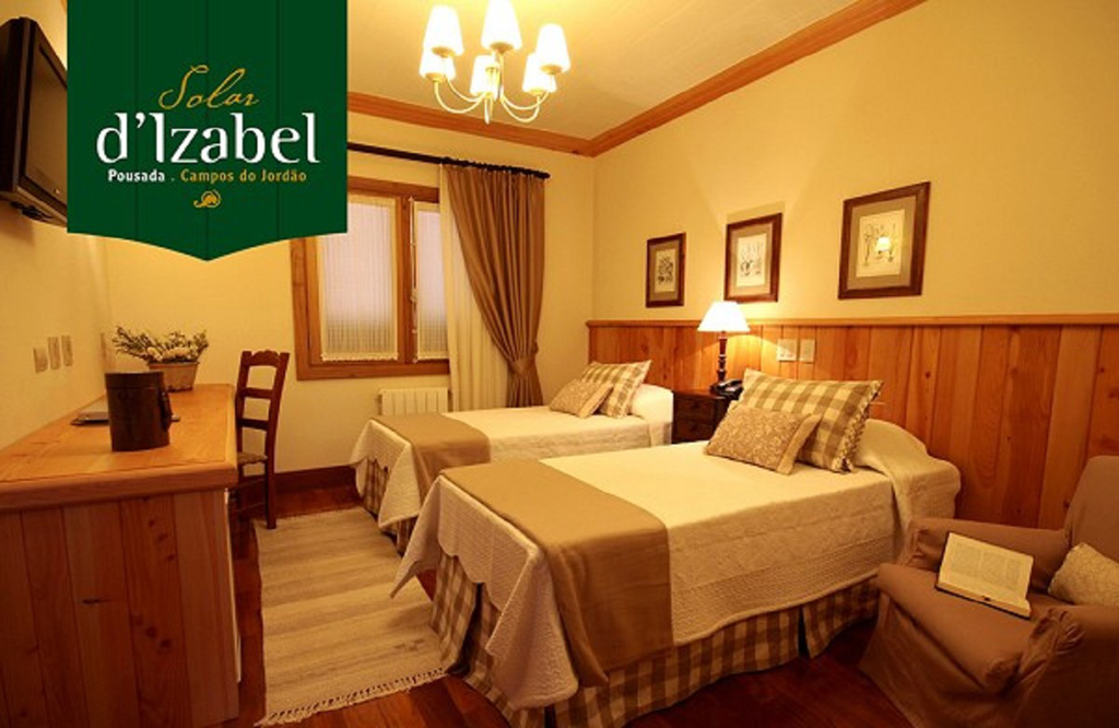 A Pousada Solar d’Izabel está classificada com 3 estrelas e está situada a poucos metros do centro comercial e turístico do Capivari, próximo a restaurantes, bares e cafés na cidade de Campos do Jordão, Brasil. Para o conforto de seus hóspedes oferece serviços gerais como serviço de lavanderia, estacionamento interno e externo, café da manhã colonial, aquecimento central, recepção 24 horas, elevador e check-in às 16h / check-out às 14h. Para o lazer a pousada disponibiliza: bicicletas exclusivas para os hóspedes e sala de estar com lareira e TV. Todas as suas acomodações estão equipadas com banheiros privativos com aquecimento nos pisos e nos toalheiros, cama box, televisão LCD a cabo com DVD, frigobar e aquecimento.