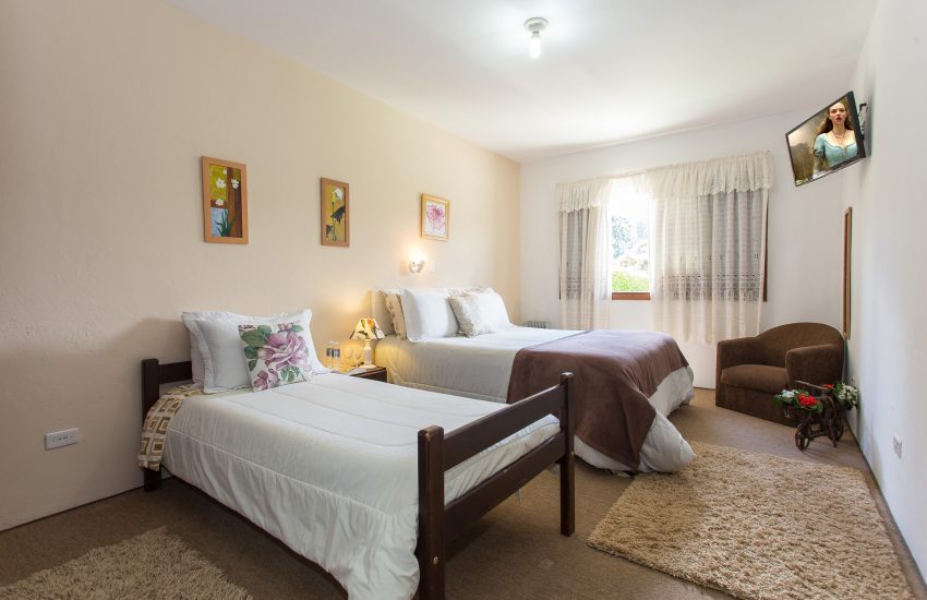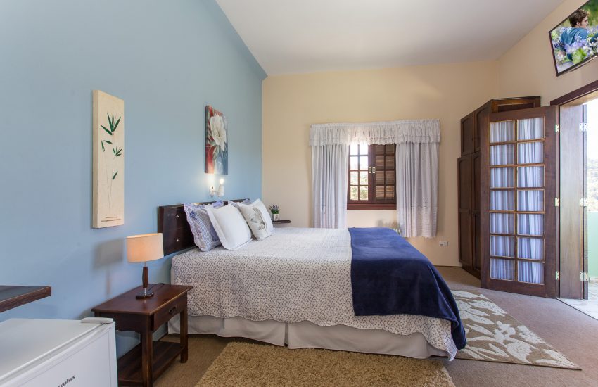 Aconchegantes apartamentos modelo standart, de diversos estilos e modelos, equipados com: TV aberta e por assinatura, wi-fi gratuíto, banheiro privativo com ducha à gás, camas aquecidas com controle de graduação e telefone com discagem direta. Temos também, algumas opções com sacada e frigobar. Casais em Lua de Mel encontram na Pousada uma suíte especial, com uma bélissima decoração com móveis estilo Luiz XV, e ainda muita comodidade, com frigobar, sacada e TV LED 32 polegadas.