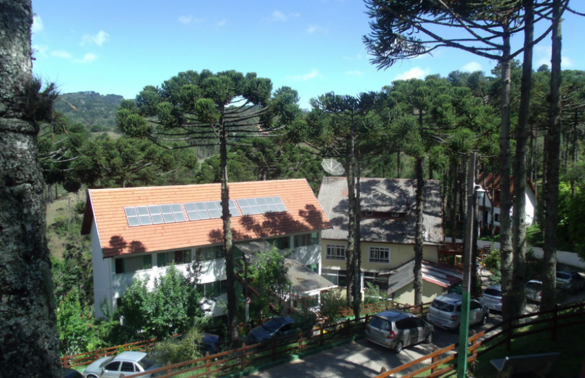 Também é lá que fica o playground, permitindo que as crianças se divirtam e corram livremente como se estivessem num parque. Por falar em parque, tem a caminhada em meio ao bosque com árvores frutíferas e muitas araucárias que, do início de março ao final de maio, são as responsáveis pela temporada de pinhão. Perto do anoitecer, o aconchego fica por conta da sala com lareira. Já o café da manhã é servido no restaurante de formato agradável e acolhedor. Os apartamentos seguem o estilo alpino e contam com TV LCD com canais pagos, aquecedor, secador de cabelo.