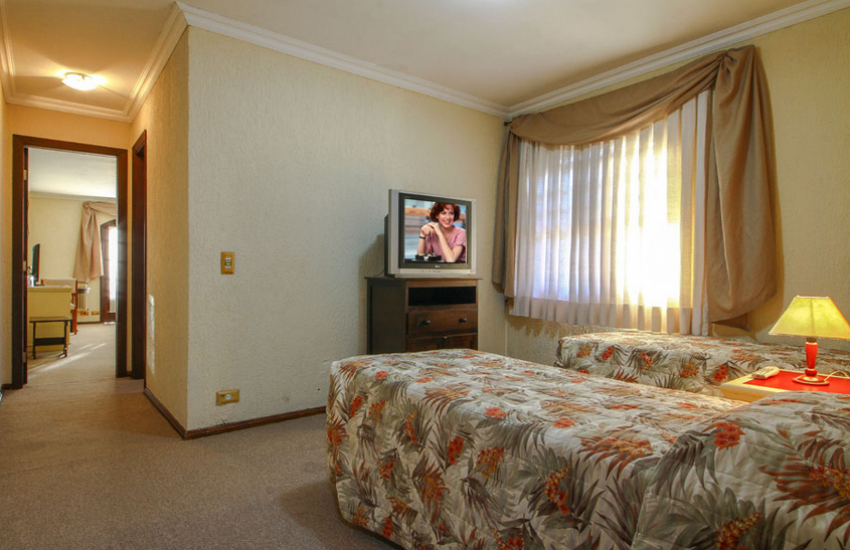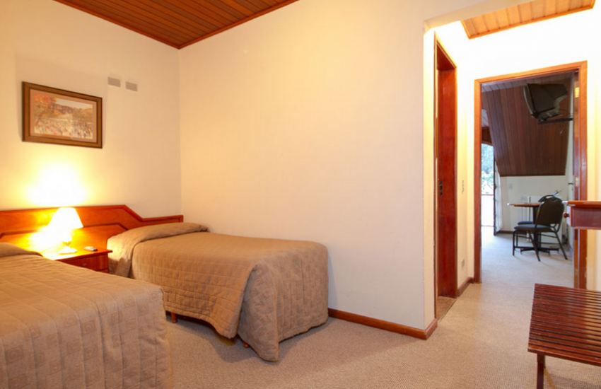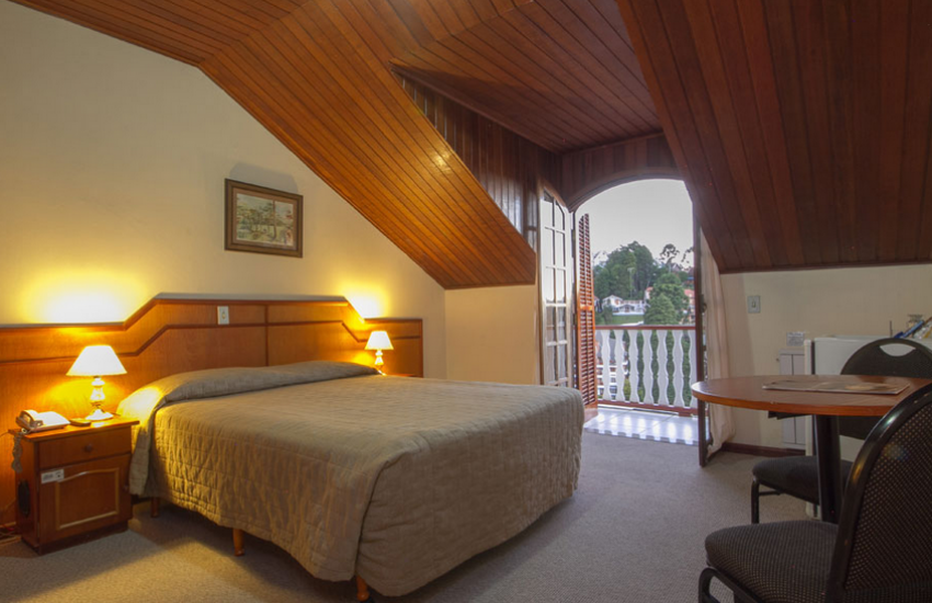 Localização: Hotel situado na Vila Capivari, a aproximadamente 450 metros de distância das principais ruas do centro turístico (cerca de 6 minutos a pé). O Hotel oferece: piscina coberta e aquecida com vista para o vale, sauna úmida, fitness center, sala de massagem (serviço pago à parte), salão de jogos, sala de carteado, playgrounds coberto e ao ar livre, salas de TV e lareira, piano bar com lanches, petiscos e pratos à la carte, restaurante Leão Gourmet, loja de conveniência e produtos artesanais, copinha da mamãe, serviço de quarto (room service), estacionamento amplo (cortesia), internet wireless (cortesia). Os apartamentos possuem: banheiro com ducha de alta pressão e secador de cabelo, telefone, cofre, TV a cabo, frigobar, calefação para aquecimento do ambiente, internet wireless (cortesia). Categoria standard: com janela (sem vista) Categoria luxo: com varanda e vista para a frente do hotel
