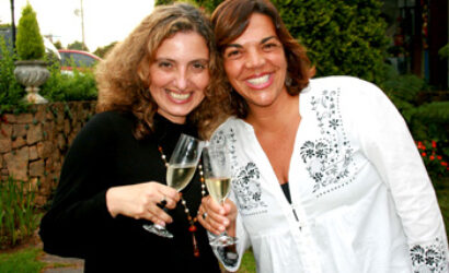 Marta Eisenlohr – Presidente da Central de Pousadas; e Valéria Estefan – Gerente Executiva do Grupo Cozinha da Montanha tomam conta da cozinha do restaurante Fondue Caramello.