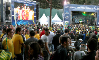 O público se vestiu com as cores da bandeira para ver a vitória no Fan Park em Campos do Jordão