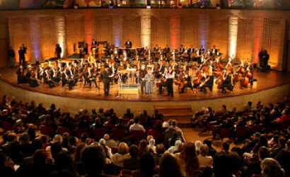Coral de crianças se apresenta na Praça durante a tarde. A noite a OSESP sobe ao palco do Auditório Cláudio Santoro
