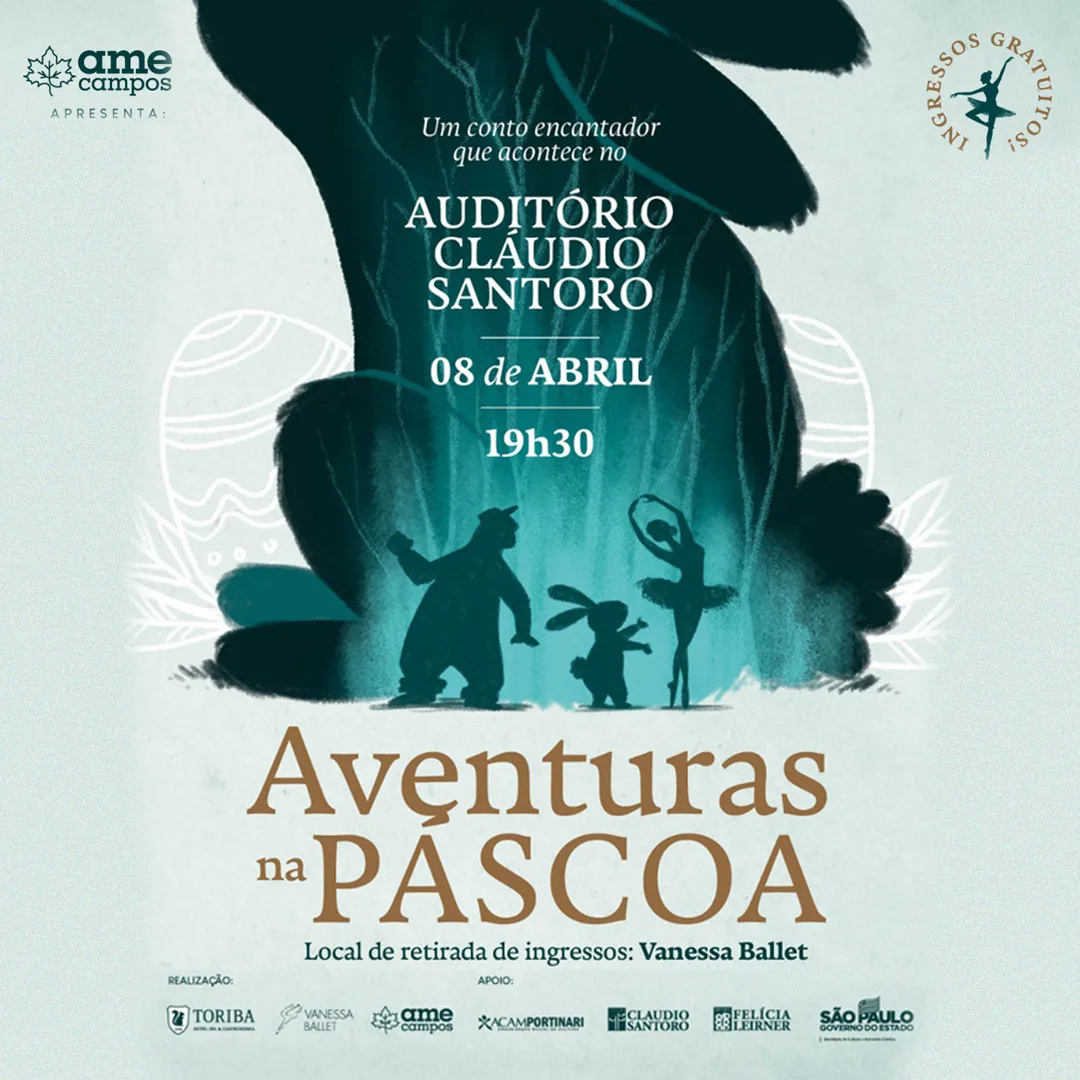 A Vanessa Ballet, Hotel Toriba e Ame Campos, com o apoio do Auditório Cláudio Santoro, Fundação Felícia Leirner, ACAM Portinari e a Secretaria de Cultura e Economia Criativa do Estado de São Paulo, preparam um evento imperdível para celebrar a Páscoa em Campos do Jordão.
