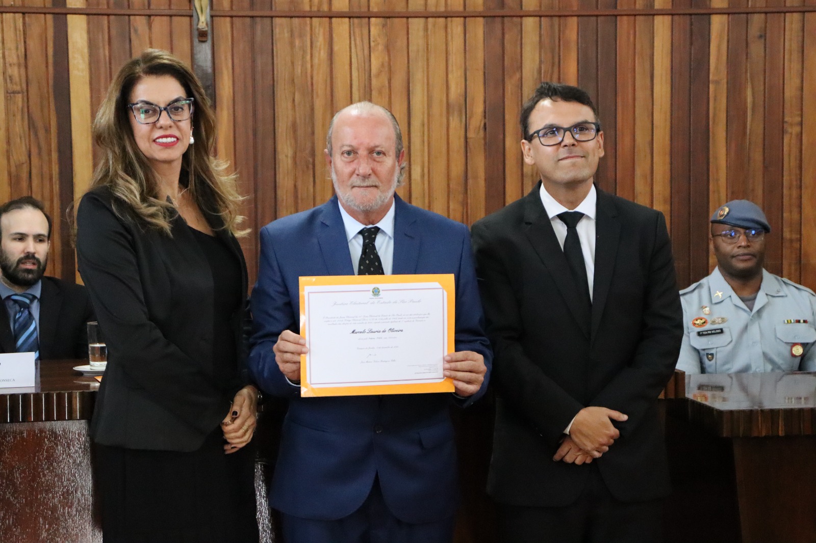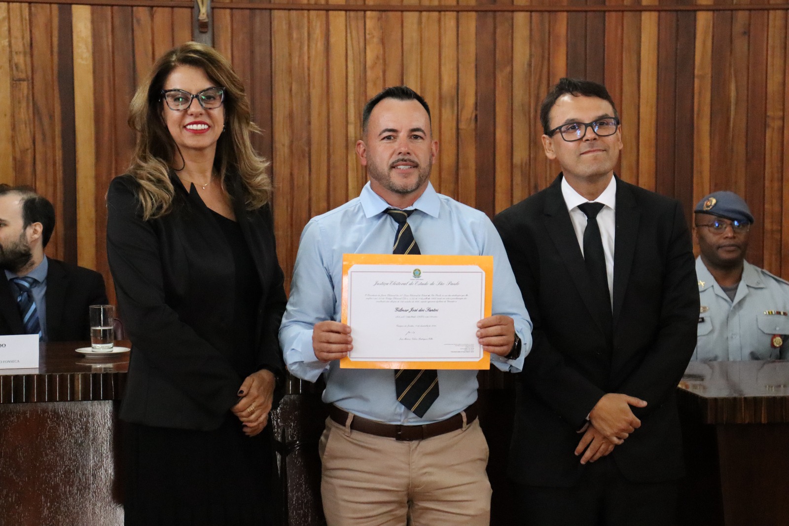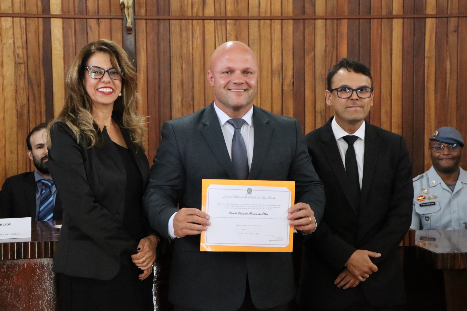A diplomação é o ato que confere aos candidatos eleitos a autorização oficial para assumirem os cargos, conforme determina a legislação eleitoral brasileira. Realizada sob a presidência do Juiz da 35ª Zona Eleitoral, Matheus Veloso Rodrigues Filho, a solenidade também contou com a presença do Promotor de Justiça Rodrigo Pacheco, do Tenente Veloso da Polícia Militar, do Comandante Robson Martins da Guarda Civil Municipal, do Delegado Luís Geraldo e do Presidente da OAB de Campos do Jordão, André dos Santos.