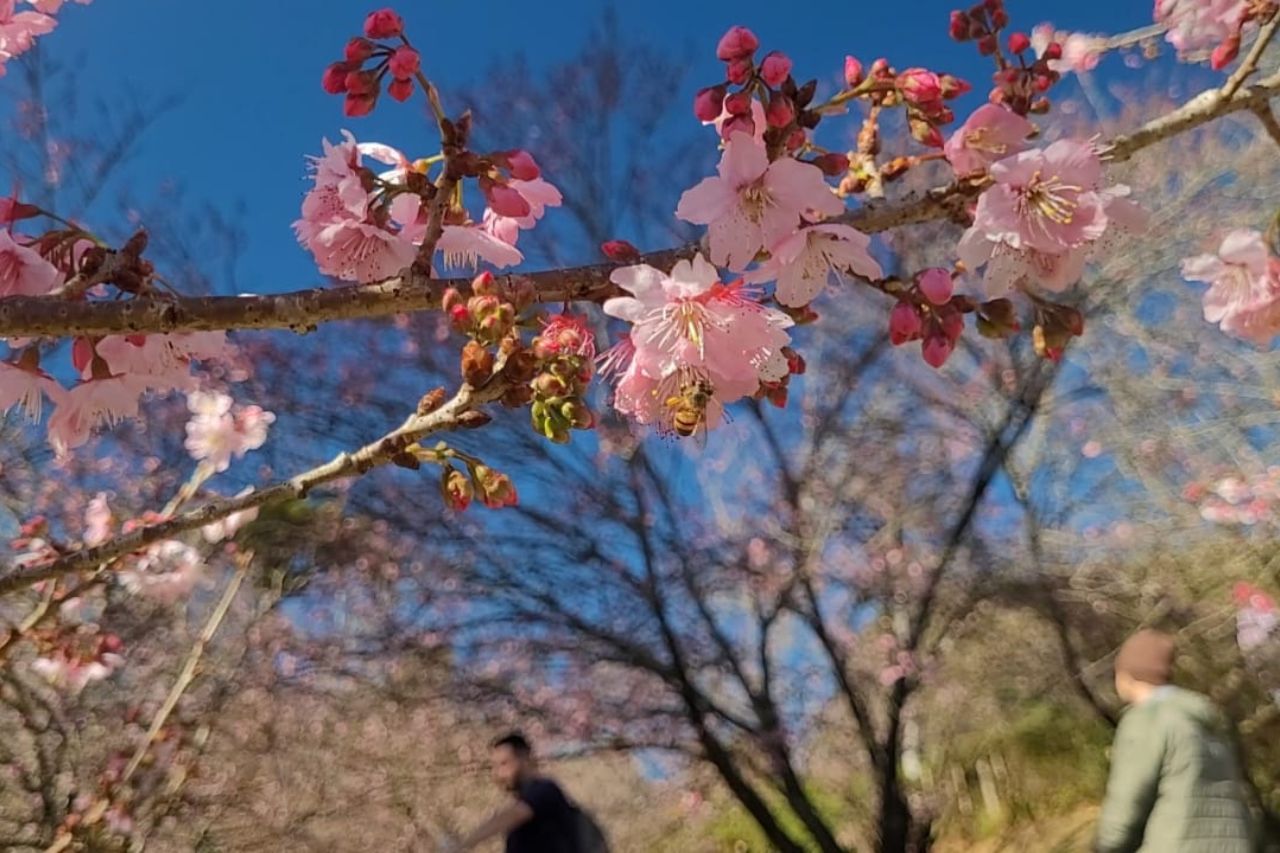 Numa corrida contra o tempo, as abelhas se deliciam sugando o néctar das flores, afinal, o espetáculo das floradas é temporário. Após alguns dias as pétalas começam a cair. A boa notícia é que a floração está só no início, por isso, ainda dá tempo de ver de perto este show da natureza.