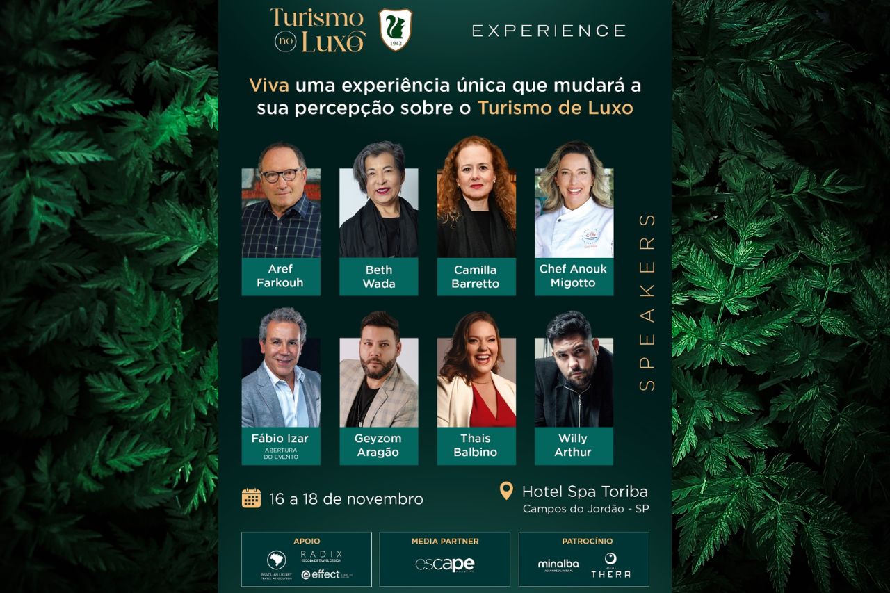 O evento contará com palestras e painéis conduzidos por grandes nomes do setor. Entre os confirmados estão Camilla Barretto, especialista em excelência hoteleira e consultora em experiências sensoriais, com a palestra “Luxo Sensorial no Turismo”; Beth Wada, executiva e professora universitária, com o tema “Quiet Luxury”; Chef Anouk Migotto, referência em gastronomia afetiva da Mantiqueira, com a palestra “Comida Afetiva da Mantiqueira”; Aref Farkouh, sócio do Hotel Toriba, que abordará “As 5 Estrelas da Hotelaria de Luxo”; Geyzom Aragão, CEO da Casa Effect, que falará sobre “Marketing Digital no Turismo de Luxo”; e Willy Arthur, CEO da Aikortex, com o tema “Como a Inteligência Artificial Pode Ajudar o Turismo de Luxo”.