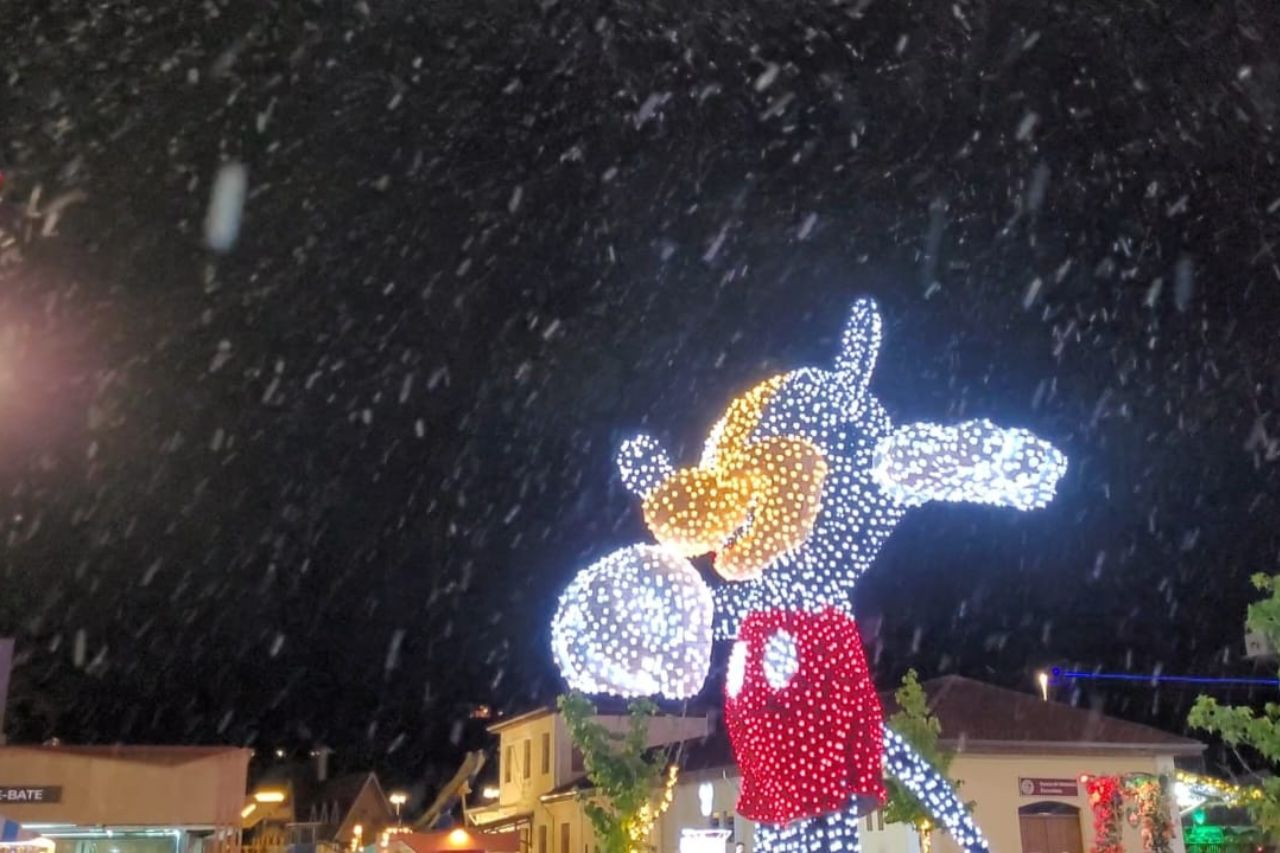 Já no Parque Capivari, a decoração traz toda a magia da Disney com seu personagem mais emblemático: o Mickey. O ratinho mais popular do planeta é representado por uma estátua de 6 m de altura iluminada com 12 mil lâmpadas de led. E quem disse que não neva em Campos do Jordão? 10 máquinas de neve artificial criam a cada 15 minutos verdadeiras nevascas que encantam adultos e principalmente as crianças.