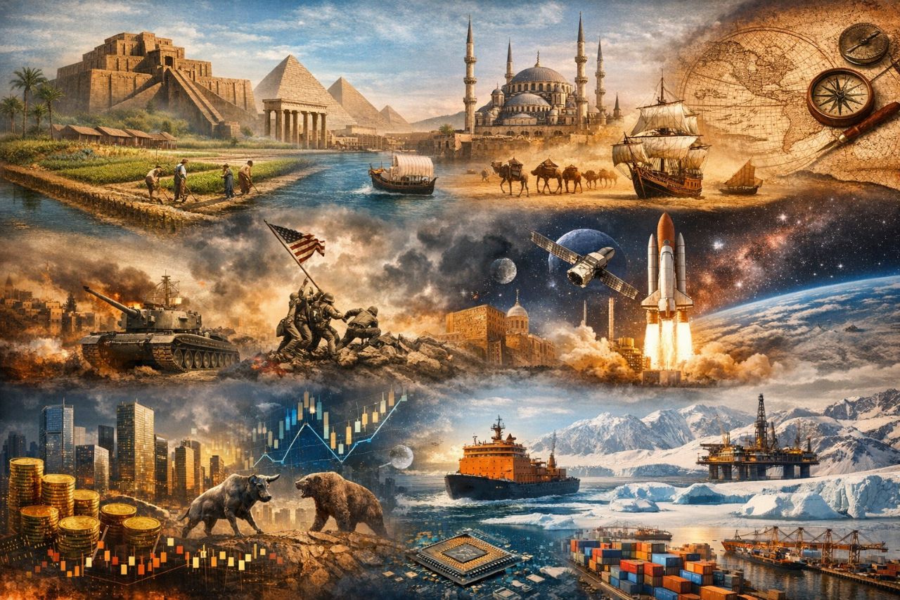 Da Mesopotâmia ao Vale do Silício, do Mediterrâneo ao Indo-Pacífico, do petróleo ao lítio, e da Groenlândia às órbitas terrestres, a história pode ser lida como uma sequência de reconfigurações do “centro” do mundo. A cada virada, um novo recurso ou infraestrutura passa a valer mais do que o anterior — e quem domina esse novo eixo ganha vantagem.