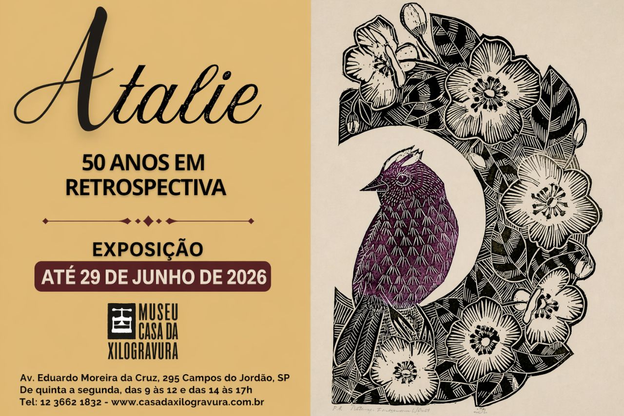 Campos do Jordão recebe uma importante atração cultural que reforça o protagonismo da cidade no cenário artístico nacional. O Museu Casa da Xilogravura apresenta a exposição temporária "Gravuras de Atalie – 50 anos em retrospectiva", uma mostra que reúne obras marcantes da artista Atalie Rodrigues Alves e propõe um mergulho em sua trajetória ao longo de cinco décadas dedicadas às artes plásticas.