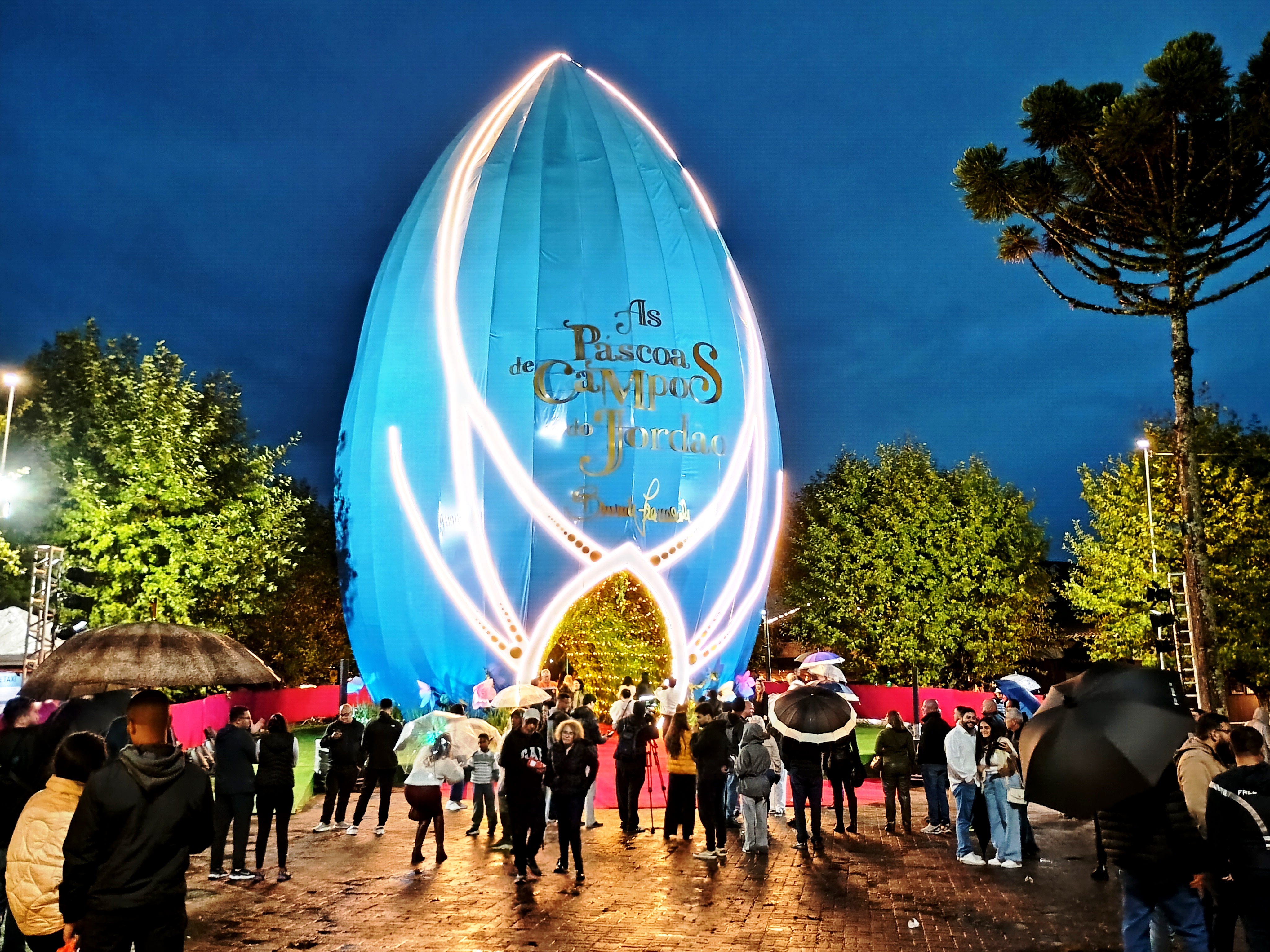 Campos do Jordão recebeu 180 mil turistas no feriadão de Páscoa e a taxa de ocupação hoteleira ficou em 76%. A grande atração, literalmente, foi o ovo gigante montado na Praça de Vila Capivari. A estrutura é tão gigantesca que concorre ao título de maior ovo de Páscoa do mundo pelo Guinness World Records. São 20 m de altura, o equivalente a um prédio de sete andares.