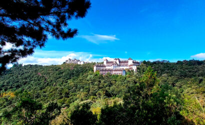 Chegando ao local a imagem impressiona não só pela vista exuberante, como também pelas construções encravadas entre as montanhas e matas magníficas da região.