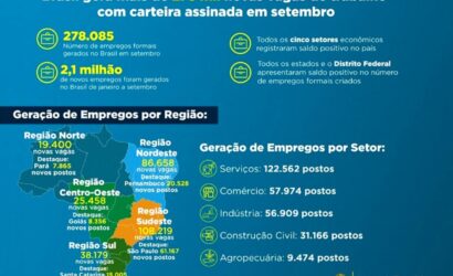 País conta atualmente com mais de 42,8 milhões de empregos formais. Apenas entre janeiro e setembro, mais de 2,14 milhões de novas vagas foram criadas